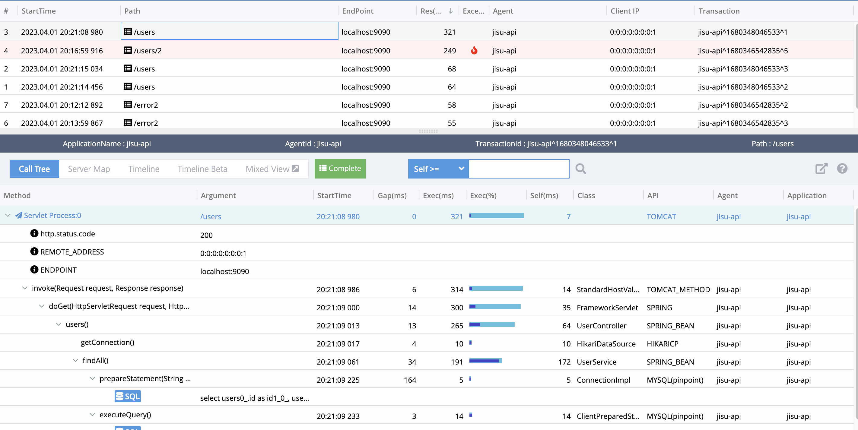 - 분산 시스템의 성능 분석 및 문제 진단 및 해결에 사용하는 APM