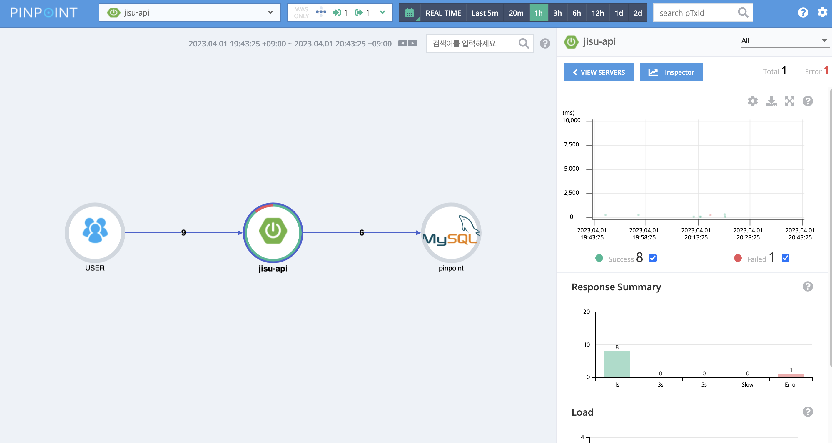 - 요청과 응단에 대한 Scatter Chart 제공