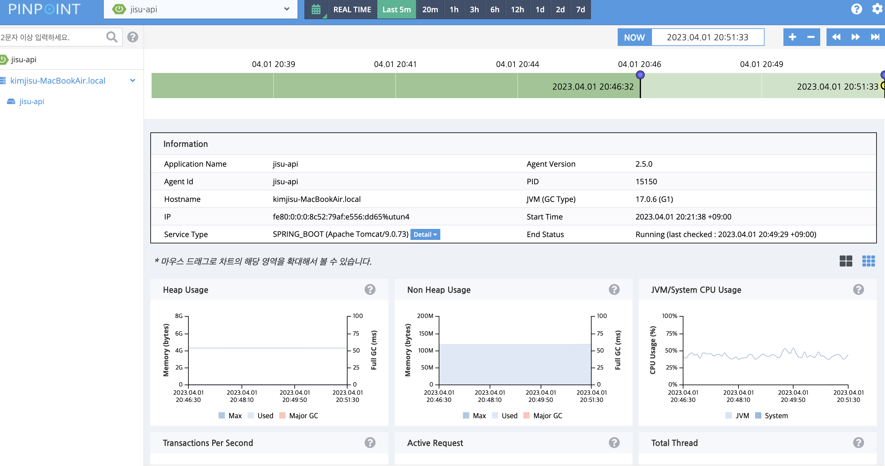 - Pinpoint Web UI - 수집된 정보 제공(성능, 모니터링, 지표)