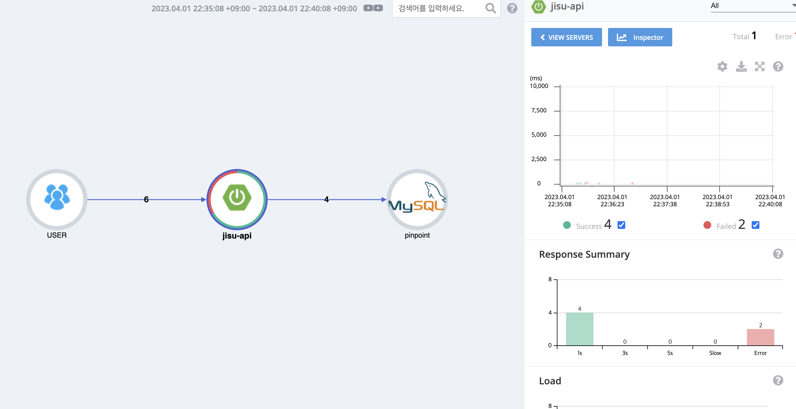 오른쪽에 보면 요청건에 대해 점이 찍혀있는 것을 확인할 수 있습니다.