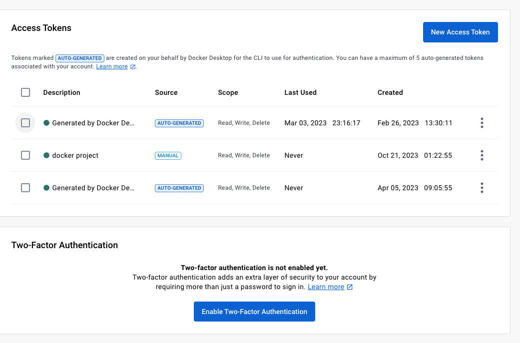 투 팩터 인증으로 도커허브에서 지원하고 있다.