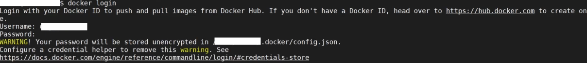 터미널에서 docker login을 하면 Username과 Password를 입력하는 커멘드가 나온다.