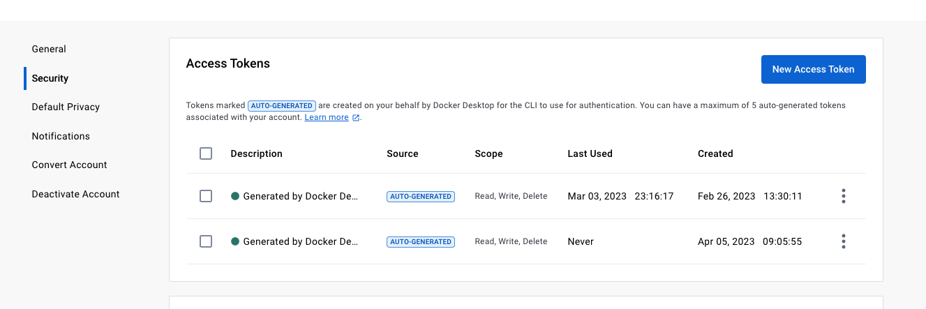 오른쪽위의 Account setting -> Security에 가면 AccessToken이 나옵니다.