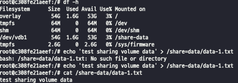 위의 컨테이너와 볼륨을 공유하는 컨테이너를 만들어주면 공유하게 됩니다.