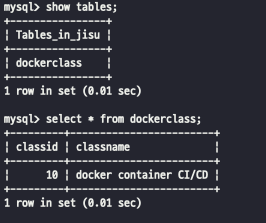 insert into dockerclass values (10,'docker container CI/CD');