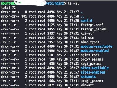 기본적으로 Nginx를 설치하게 되면 /etc/nginx 경로에 파일들이 생기게 됩니다.