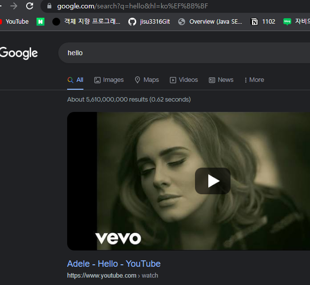 검색창에 https://www.google.com:443/search?q=hello&hi=ko
