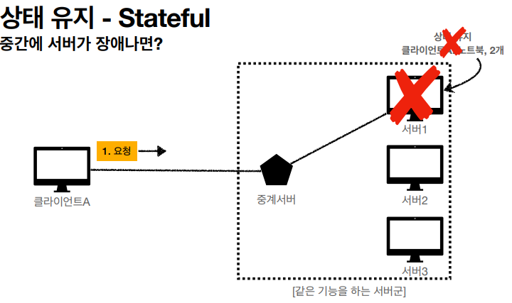 상태 유지를 하므로 점원이 바뀌면 그 전 상황을 알 수 없습니다. 그래서 장애가 생기는 겁니다.