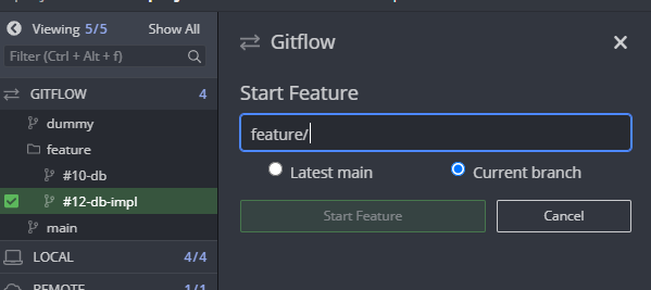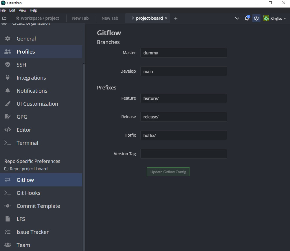 애초에 깃 크라켄은 깃 플로우 전략을 지원하고 있습니다.