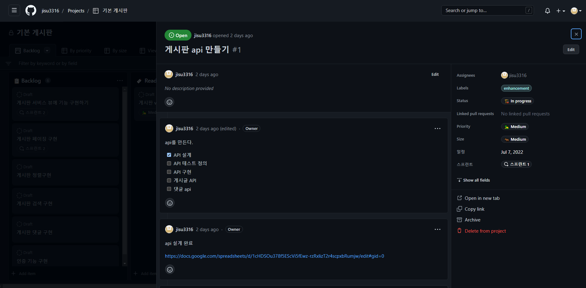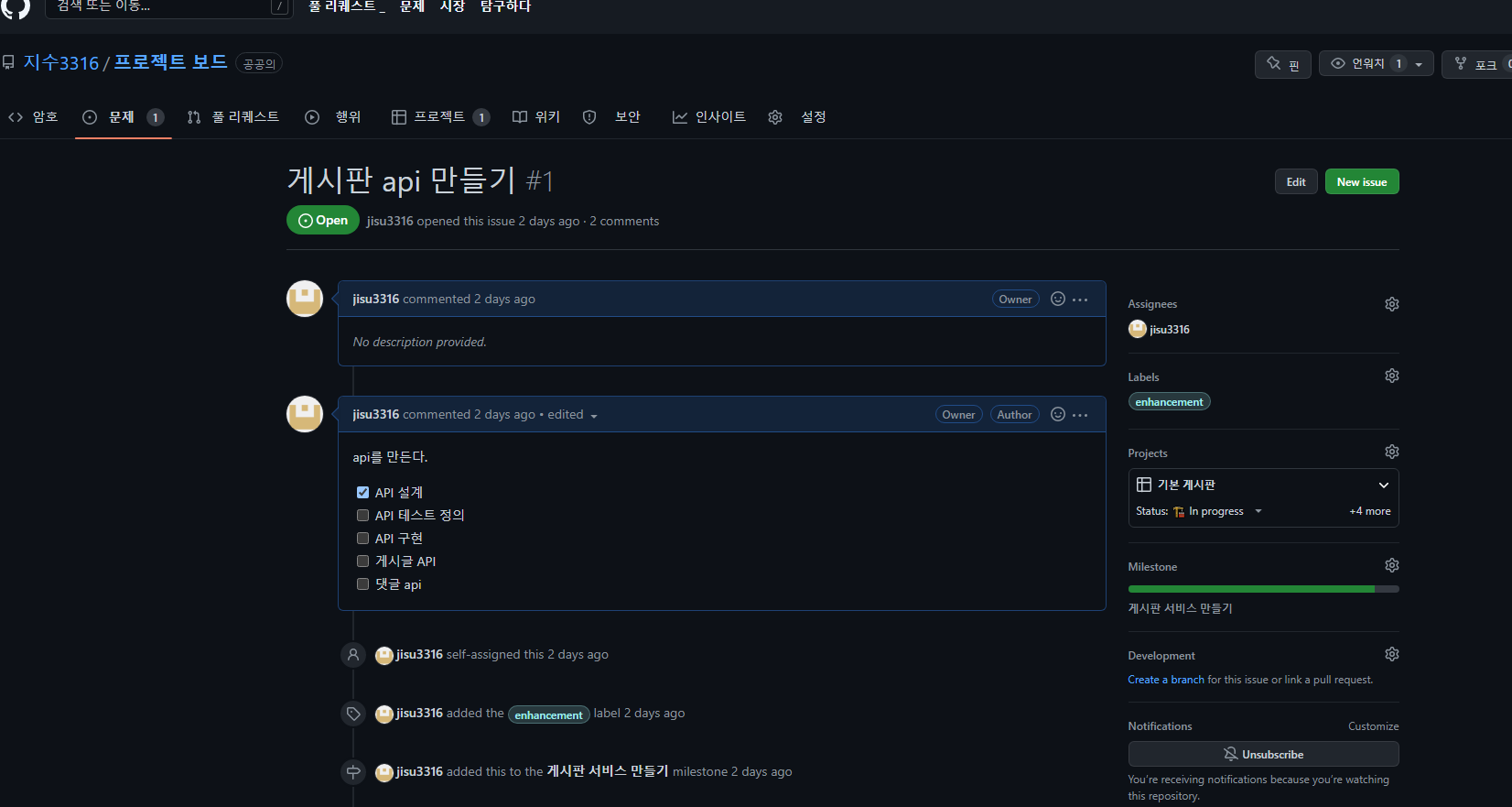 이런 식으로 이슈 등록을 하게 되면 밑의 그림처럼