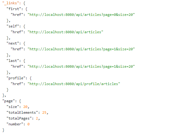 그리고 바디의 끝부분에는 페이징에대한 정보와, REST API의 HATEOAS까지 자동으로 만들어 줍니다.