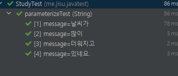 @ValueSource(strings = {"날씨가", "많이", "더워지고", "있네요."})