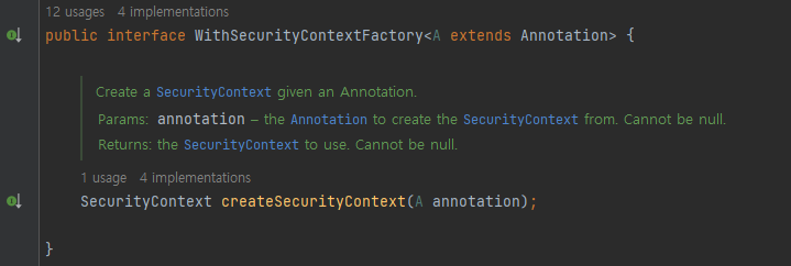 @WithSecurityContext를 적용하기 위해서는 어노테이션을 만들어야 합니다. 그 이유는